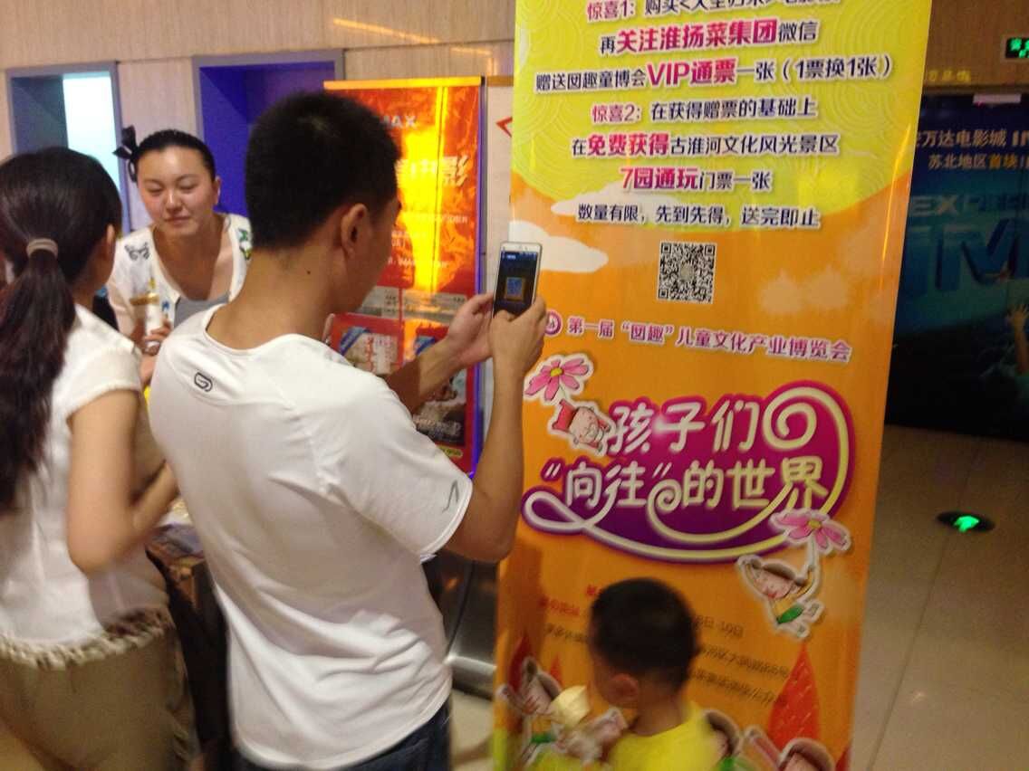 为更好的宣传第一届囡趣儿童文化产业博览会,推广淮扬菜文化与西游记产业,7月10日—12日,在淮安万达影城,淮扬菜集团联合西游记集团龙宫大白鲸团队 举办了“大圣归来·淮扬文化”的系列主题宣传推广活动。7月10日,还在影城9号放映厅举办首届囡趣儿童文化产业博览会会歌发布仪式。现场用舞蹈,人偶表 演,微信,宣传单等多种宣传方式有效的提升了淮扬菜文化与西游记产业的知名度与关注度,起到了十分良好的宣传效果。